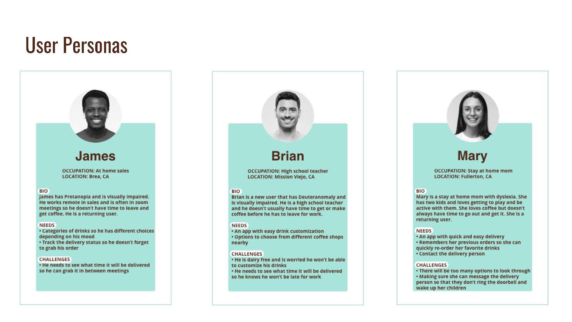 I worked on a coffee delivery app created for individuals with visual impairments and dyslexia. My responsibilities included designing icons, developing user personas, and contributing to the illustrations and logo design.