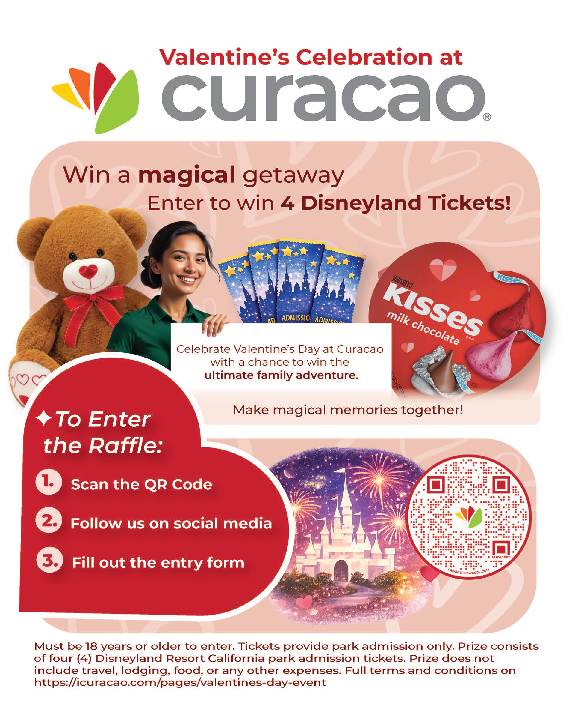 Developed a branded promotional email for a customer giveaway campaign for Curacao. The piece communicates how to enter via QR code, social media follow, and digital form submission. The project highlights strong information hierarchy and legal-friendly copy, clearly presenting eligibility, prize details, and full terms for a Disneyland ticket raffle while maintaining an engaging and professional tone suitable for a retail marketing audience.
